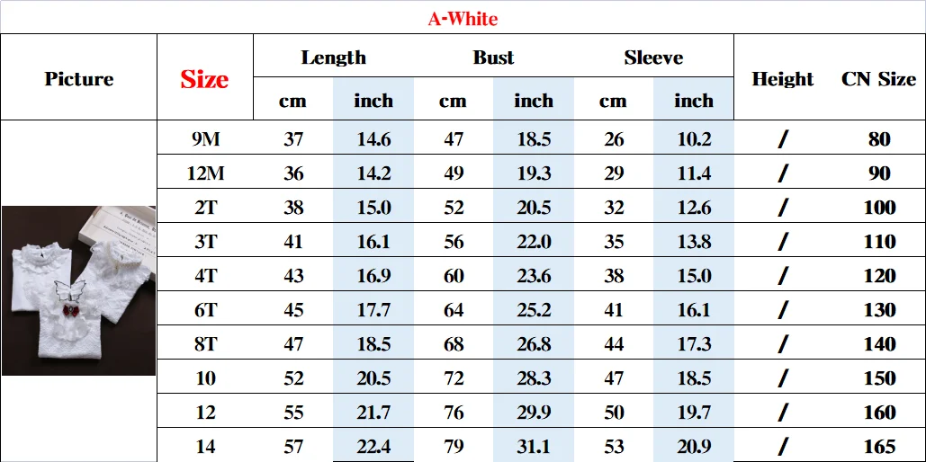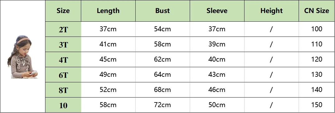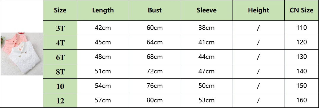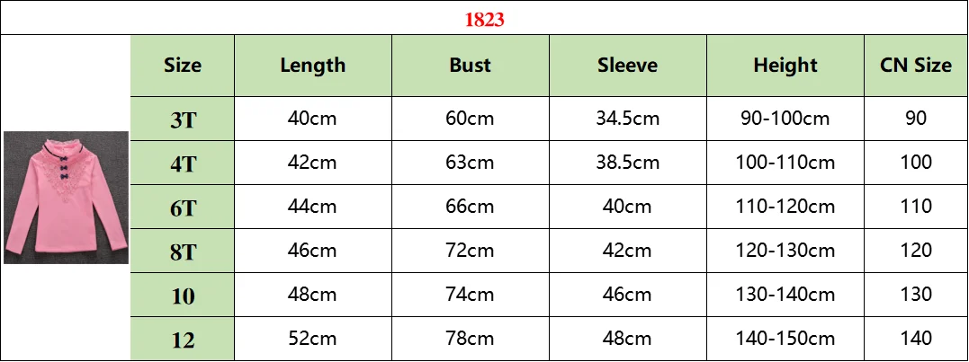 Size: 2T3T, 4T, 6T, 8T, 10 ,12