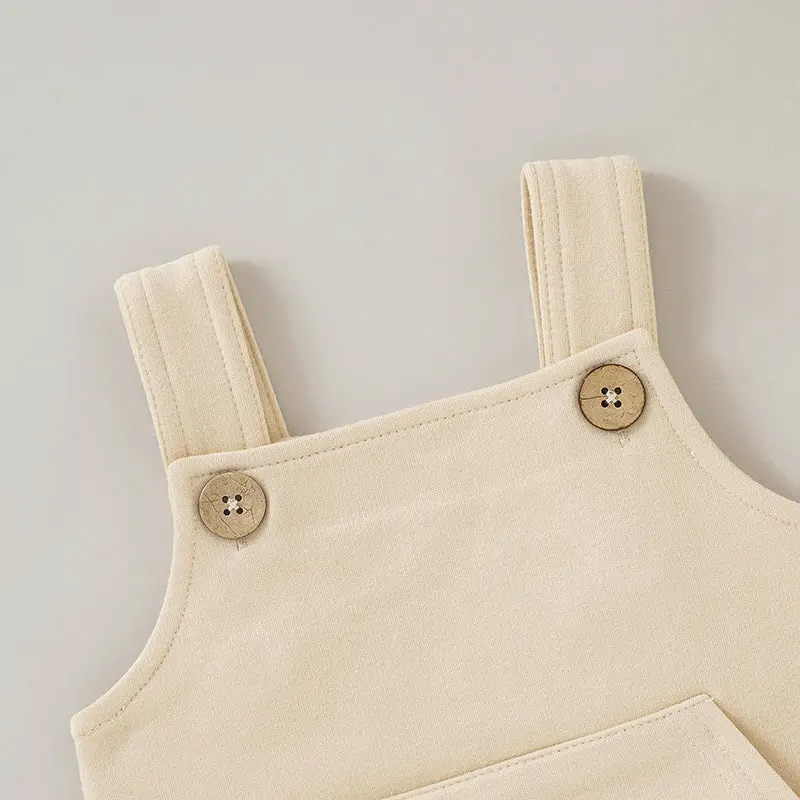 French Terry Overalls featuring stylish buttons and a front pocket. Made from a thick blend of organic cotton and spandex. Wear on its own or layer with short or long sleeve shirts. Gender neutral styling is perfect for all babies and toddlers.